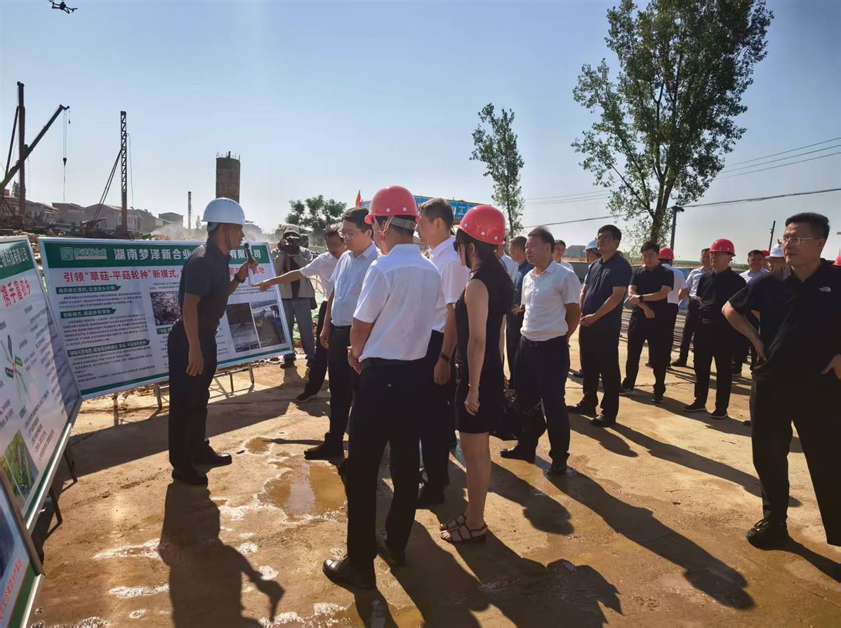 湖南梦泽新合业生物科技公司现场驻点人员在总经理刘洪亮、董事龚郁的带领下,列队欢迎县各级领导参观考察湘阴县食用菌产业融合示范区项目。县乡村各级领导和代表现场详细听取了工作人员对于湘阴县食用菌产业融合示范区项目介绍。