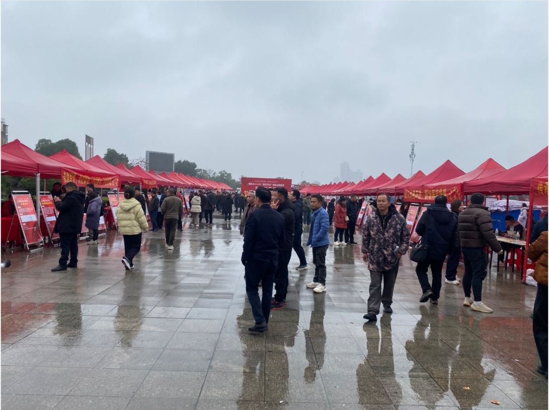 “春风行动” 作为湘阴县每年重点打造的就业服务品牌,今年的规模再创新高。活动现场,近百家县内外优质企业齐聚一堂,提供了涵盖制造、服务、农业、科技等多个领域的数千个就业岗位。尽管活动当日细雨濛濛,地面略显湿滑,但丝毫没有阻挡求职者的热情。广场上,一排排红色的招聘帐篷整齐排列,与醒目的企业宣传展板交相辉映,构成了一幅政企联动、共促就业的生动画面。